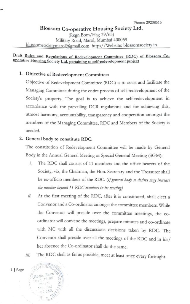 This circular entails the rules and regulations of the Redevelopment Committee for Blossom’s self-redevelopment project.
