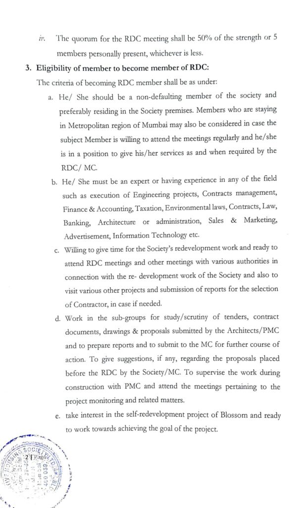 For Blossom Co-operative Housing Society Ltd.